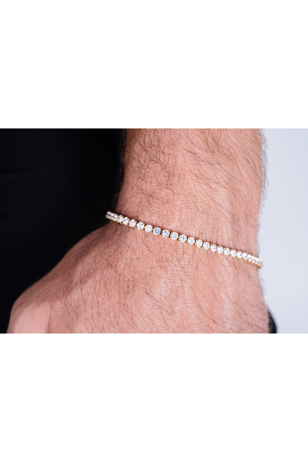 Elevate your look with this thin 18K Gold-Plated Stainless Steel Tennis Bracelet with Stones, designed to add a refined touch of shine to any outfit. Featuring a continuous row of stones set in a sleek gold-tone frame, this bracelet delivers a clean yet luxurious aesthetic. Built for life.