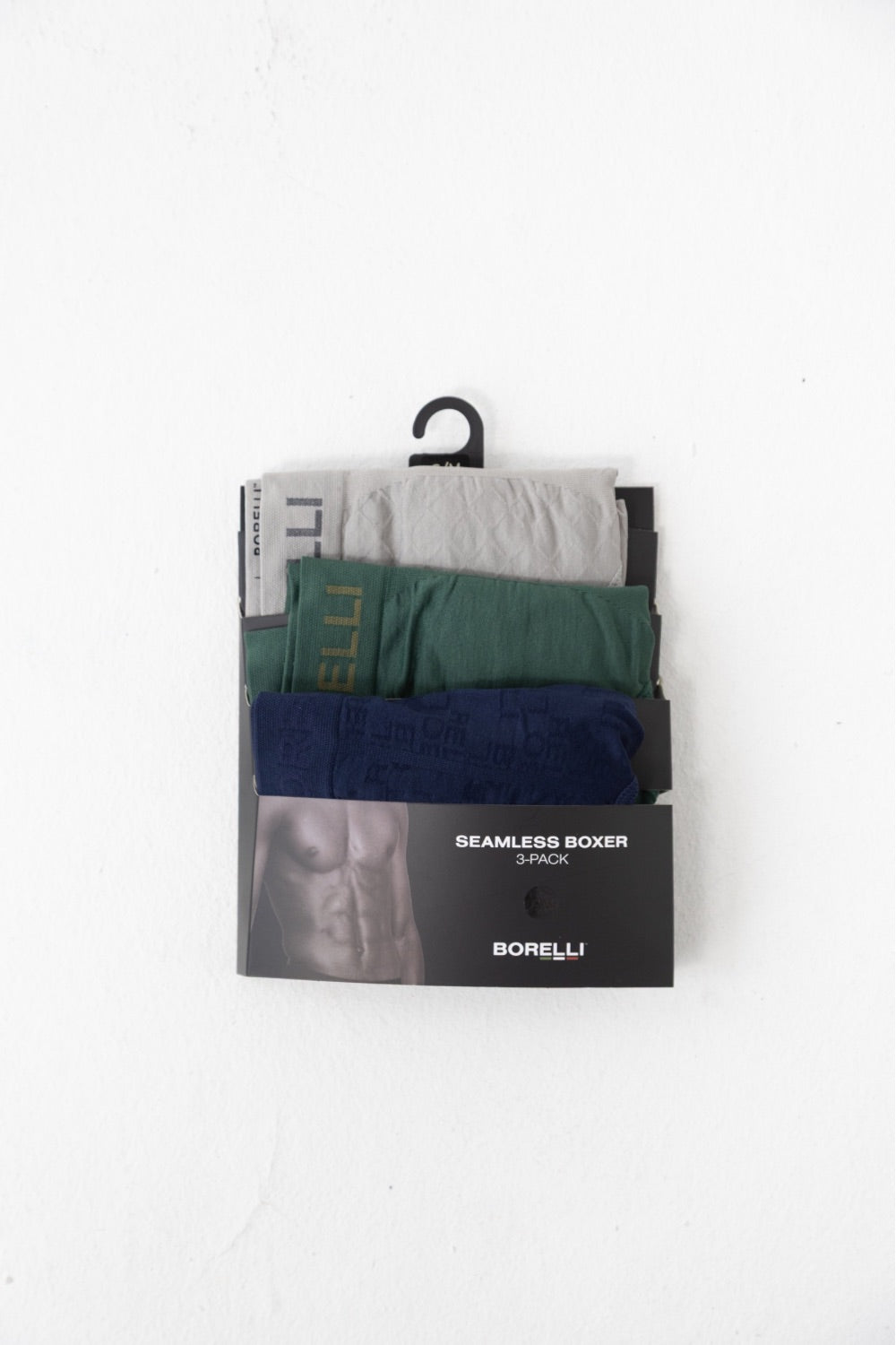 Elevate your essentials with the Riccardo 3-Pack Seamless Underwear, featuring rich navy, forest green, and grey shades. Designed with subtle allover Borelli jacquard detailing, these briefs offer a sophisticated and understated style.
