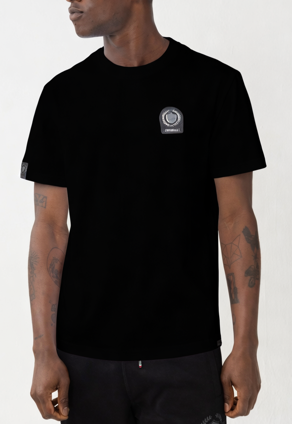 Make a bold impression with the Brunello in black, a standout piece from the Borelli Premium range. Featuring a striking 3D embroidery across the back and a statement metal badge on the chest, this t-shirt perfectly balances luxury and streetwear edge. Crafted from soft, enzyme-washed 200 gsm cotton, it offers premium comfort with a structured silhouette. The signature back neck tape detail adds a refined finishing touch to this must-have wardrobe essential.