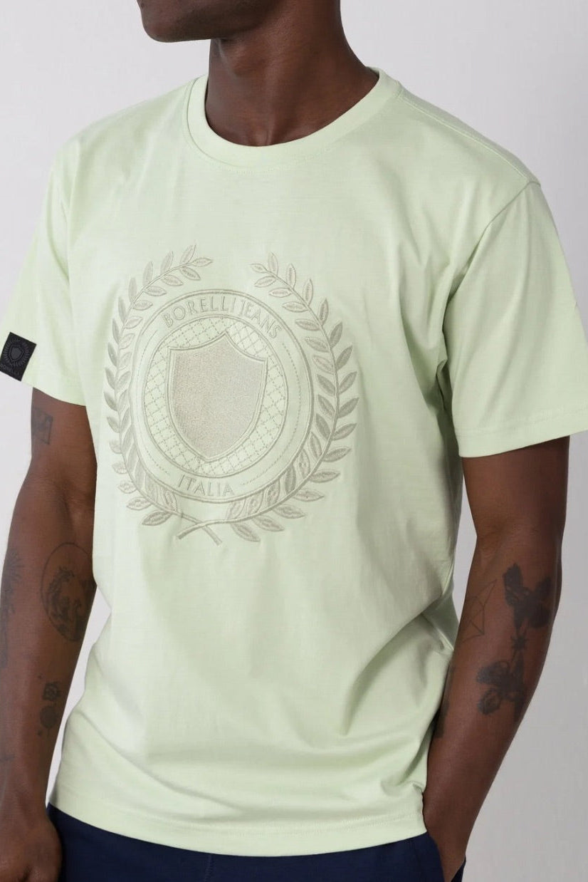 Soft, modern and refined, the Constante sage t-shirt features a large 3D embroidered crest that stands boldly against the muted sage backdrop. It is a statement piece with a calm, luxurious tone- ideal for men who enjoy stand-out design without loud colours. Crafted from medium weight 200 gsm cotton and enzyme washed for softness, this is a relaxed essential with thoughtful design at its core.